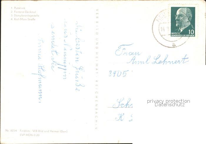 72371433 alte Postkarte Neuruppin Poliklinik Fontane Denkmal Dampferanlegestelle Karl Marx Strasse postalisch gelaufen Erhaltung siehe scans KatCode: 11110012068320