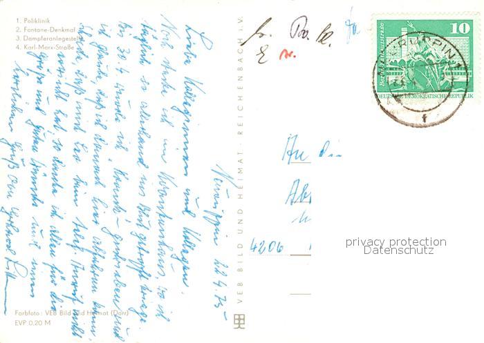 73305265 alte Postkarte Neuruppin Poliklinik Fontane Denkmal Dampferanlegestelle Karl Marx Strasse postalisch gelaufen Erhaltung siehe scans [FriedD77] KatCode: 11110012068320