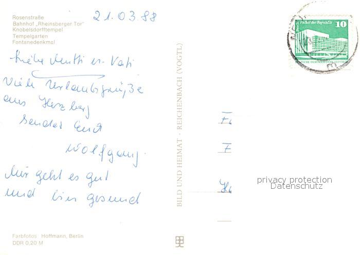 72986479 alte Postkarte Neuruppin Rosenstrasse Bahnhof Rheinsberger Tor Knobelsdorfftempel Tempelgarten Fontanedenkmal postalisch gelaufen Erhaltung siehe scans [WerneD78] KatCode: 11110012068320