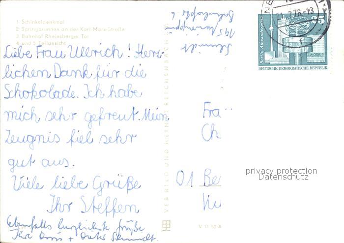 72025642 alte Postkarte Neuruppin Schinkel Denkmal Springbrunnen Karl Marx Strasse Bahnhof Rheinsberger Tor postalisch gelaufen Erhaltung siehe scans KatCode: 11110012068320