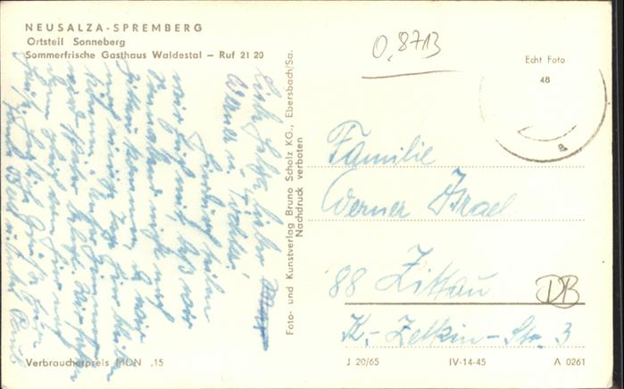 40972625 Neusalza-Spremberg Sonneberg Sommerfrische Gasthaus Waldestal KatCode 11110014286270