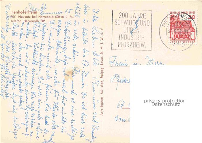 Neusatz Bad Herrenalb Henhoeferheim Fliegeraufnahme postalisch gelaufen Erhaltung siehe scans [WerneD78] alte Postkarte Wern Katcode 11110008235033