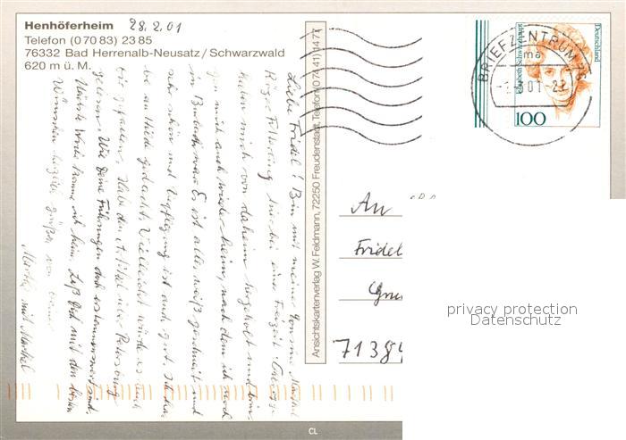 73083273 alte Postkarte Neusatz Bad Herrenalb Henhoeferheim Fliegeraufnahme Kirche postalisch gelaufen Erhaltung siehe scans [KathaD81] KatCode: 11110008235033