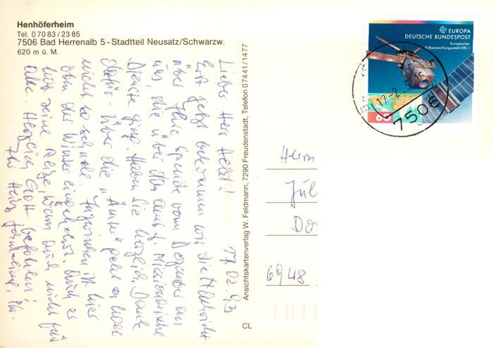 73878763 alte Postkarte Neusatz Bad Herrenalb Henhoeferheim Gastraeume Hauskapelle Pavillon postalisch gelaufen Fliegeraufnahme Erhaltung siehe scans [WerneD78] KatCode: 11110008235033