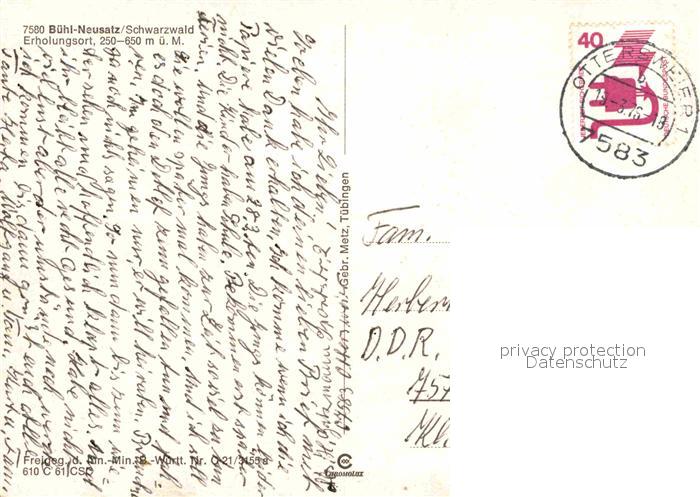 72650700 alte Postkarte Neusatz Buehl Fliegeraufnahme postalisch gelaufen Erhaltung siehe scans [WerneD78] KatCode: 11110008216007