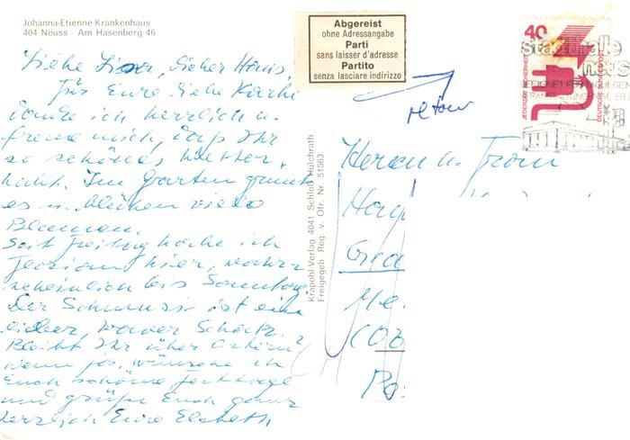 73883928 alte Postkarte Neuss Johanna Etienne Krankenhaus Fliegeraufnahme postalisch gelaufen Erhaltung siehe scans [WerneD78] KatCode: 11110005162024