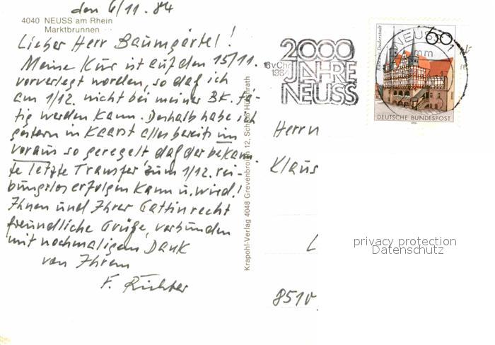 72806799 alte Postkarte Neuss Marktbrunnen postalisch gelaufen Erhaltung siehe scans [FriedD77] KatCode: 11110005162024