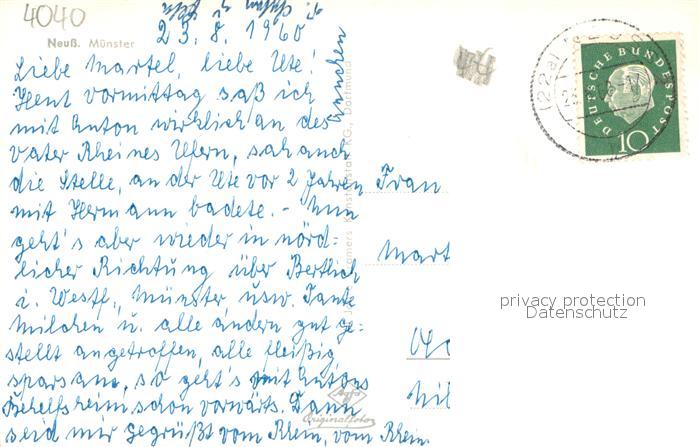 73688693 alte Postkarte Neuss Muenster postalisch gelaufen Erhaltung siehe scans [WerneD78] KatCode: 11110005162024