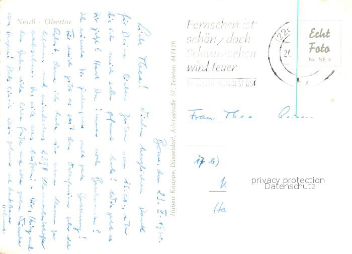 73867574 alte Postkarte Neuss Obertor postalisch gelaufen Erhaltung siehe scans [WerneD78] KatCode: 11110005162024