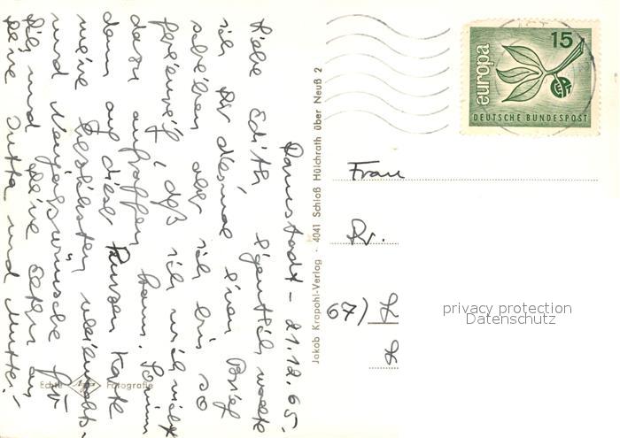 73293235 alte Postkarte Neuss Schloss Huelchrath Weihnachtskarte postalisch gelaufen Erhaltung siehe scans [LiesaD40] KatCode: 11110005162024
