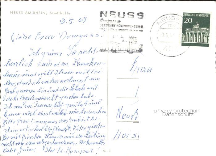 72108612 alte Postkarte Neuss Stadthalle postalisch gelaufen Erhaltung siehe scans KatCode: 11110005162024