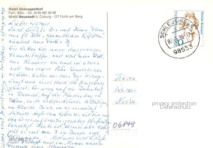 73751616 alte Postkarte Neustadt Coburg Hotel Grenzgasthof Gasthof Baetz postalisch gelaufen Erhaltung siehe scans [WerneD78] KatCode: 11110009473151