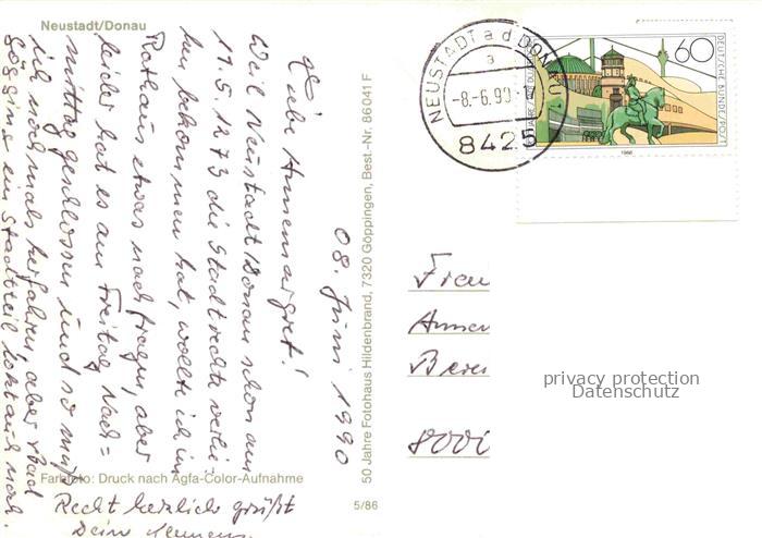 74013757 alte Postkarte Neustadt Donau Motiv Innenstadt Brunnen postalisch gelaufen Erhaltung siehe scans [FriedD77] KatCode: 11110009273152