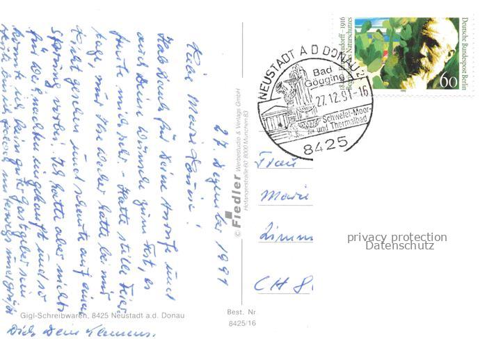74013756 alte Postkarte Neustadt Donau Panorama postalisch gelaufen Fliegeraufnahme Erhaltung siehe scans [FriedD77] KatCode: 11110009273152