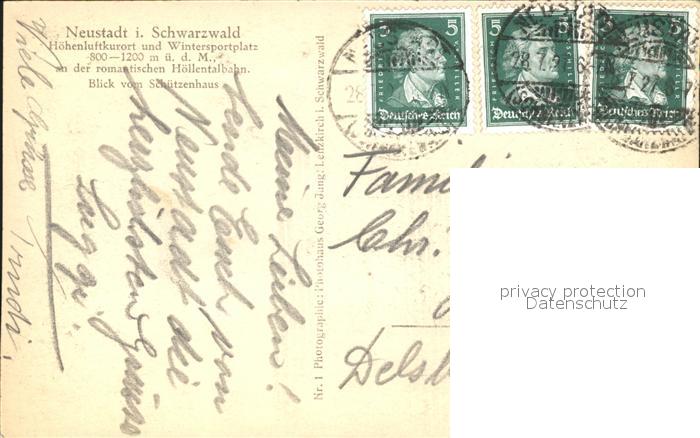 71911302 alte Postkarte Neustadt Donaueschingen Blick vom Schuetzenhausweg postalisch gelaufen Erhaltung siehe scans KatCode: 11110008326012