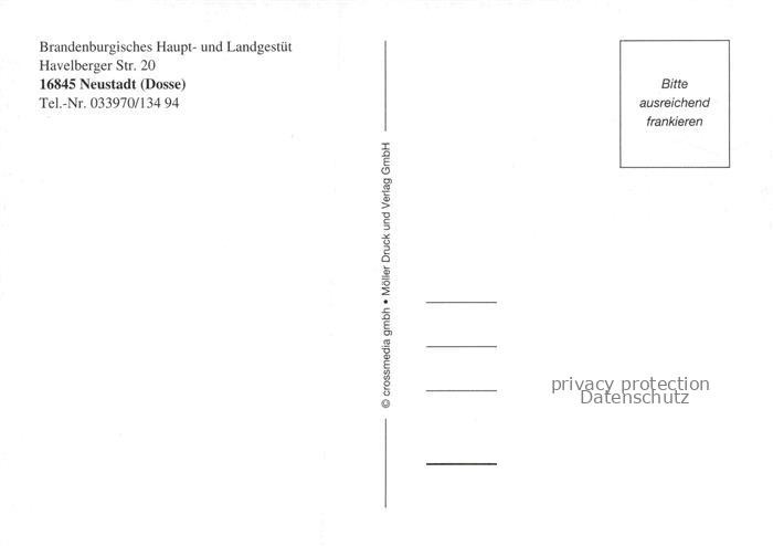 74132370 Neustadt Dosse Brandenburg Stadt der Pferde Brandenburgisches Haupt- und Landgestuet Pferdekutsche Koppel postalisch nicht gelaufen Erhaltung siehe scans [FriedD77] Frie Katcode 11110012068324