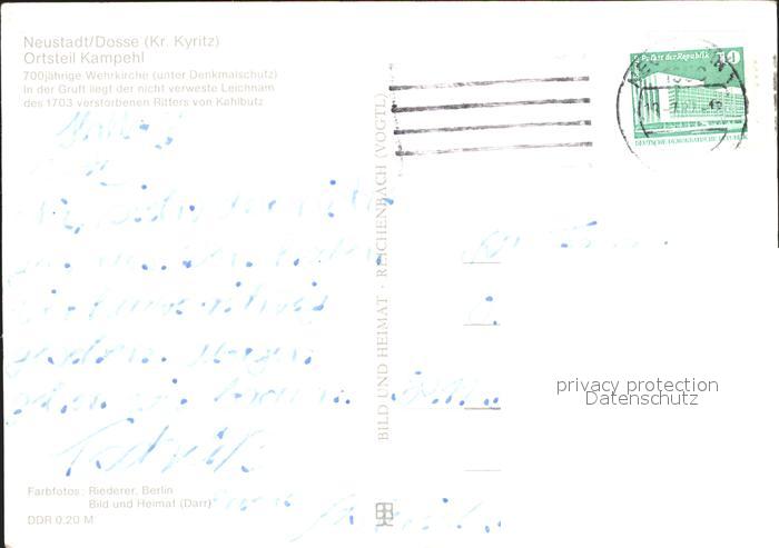 71946731 alte Postkarte Neustadt Dosse OT Kampehl 700jaehrige Wehrkirche Gruft mit Mumie des Ritters von Kahlbutz postalisch gelaufen Erhaltung siehe scans KatCode: 11110012068324