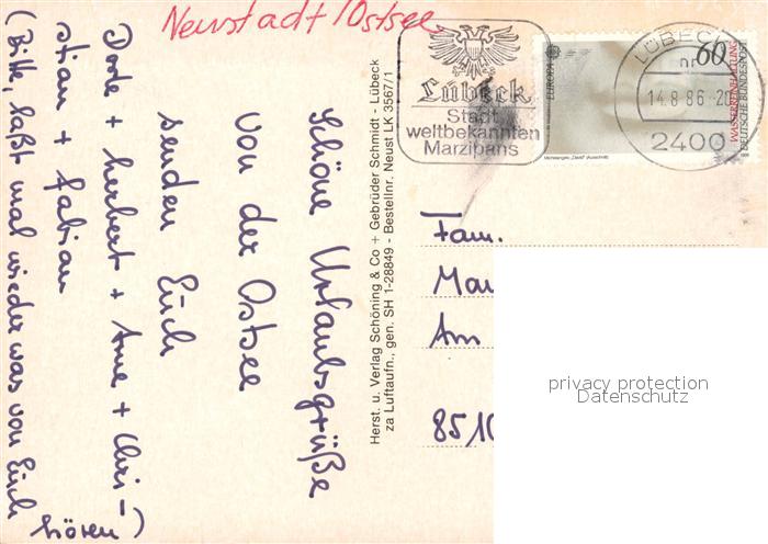73080624 alte Postkarte Neustadt Flensburg Fliegeraufnahme Hafen postalisch gelaufen Erhaltung siehe scans [KathaD81] KatCode: 11110001001000