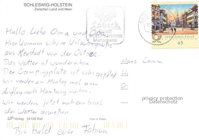 74025040 alte Postkarte Neustadt Flensburg Schleswig Holstein zwischen Land und Meer postalisch gelaufen Fliegeraufnahme Erhaltung siehe scans [FriedD77] KatCode: 11110001001000