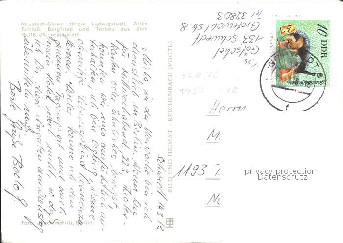 72027039 alte Postkarte Neustadt-Glewe Schloss Bergfried postalisch gelaufen Erhaltung siehe scans KatCode: 11110013054081