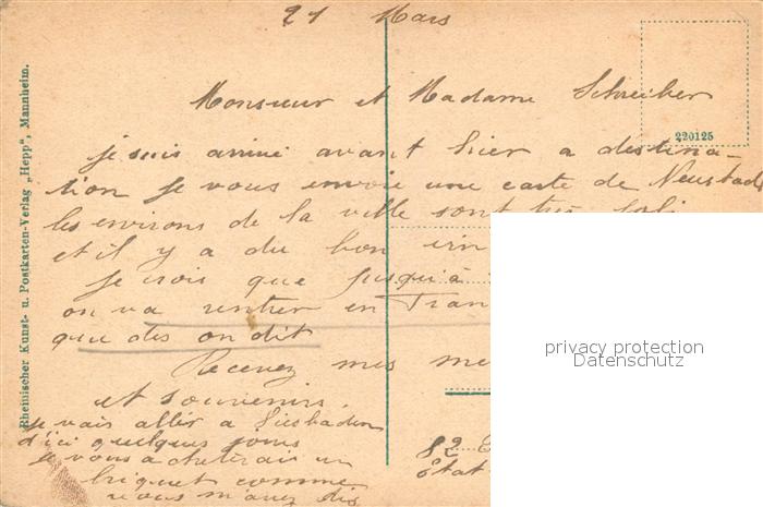 43492207 Neustadt Haardt postalisch nicht gelaufen Erhaltung siehe scans [LiesaD40] KatCode: 11110007316000