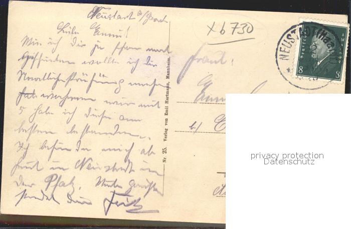 41790256 alte Postkarte Neustadt Haardt postalisch gelaufen Erhaltung siehe scans KatCode: 11110007316000