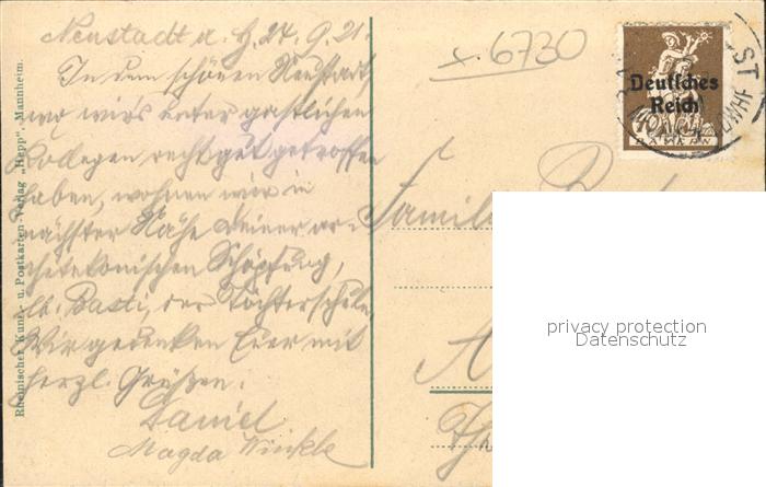 41790250 alte Postkarte Neustadt Haardt postalisch gelaufen Erhaltung siehe scans KatCode: 11110007316000