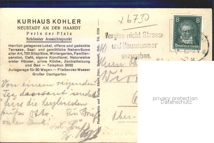 41790251 alte Postkarte Neustadt Haardt Kurhaus Kohler postalisch gelaufen Erhaltung siehe scans KatCode: 11110007316000