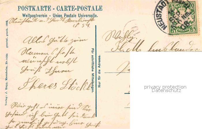 42602241 alte Postkarte Neustadt Haardt Neptunplatz postalisch gelaufen Erhaltung siehe scans [KathaD79] KatCode: 11110007316000