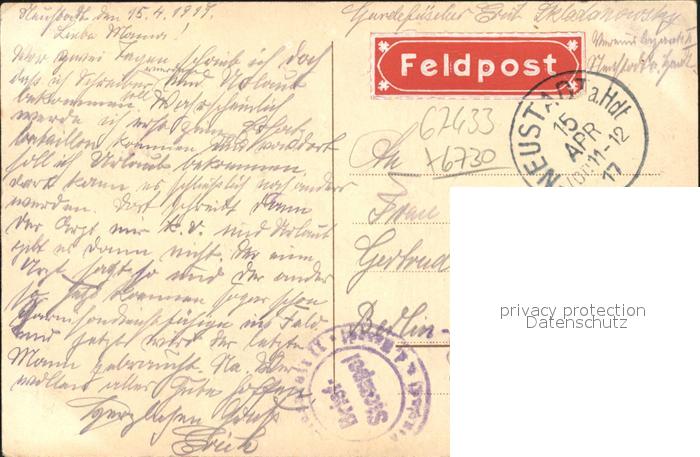 41793037 alte Postkarte Neustadt Haardt Schoenthal postalisch gelaufen Feldpost Erhaltung siehe scans KatCode: 11110007316000