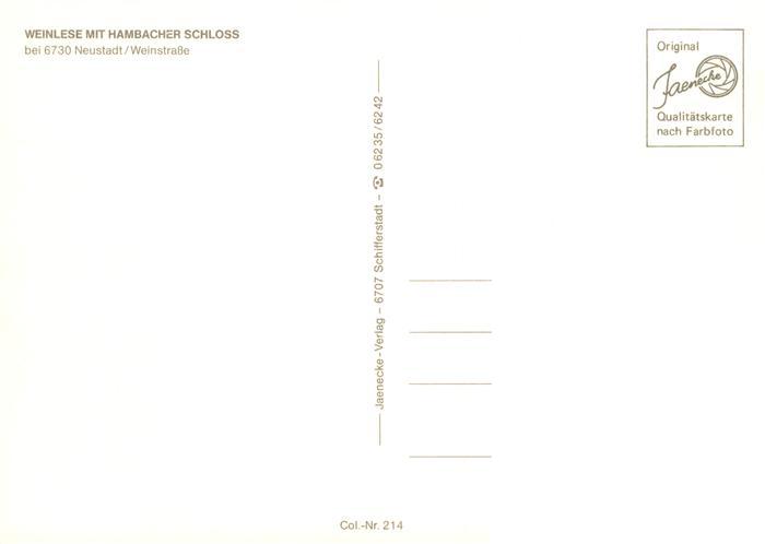 73924548 Neustadt Haardt Weinstrasse Weinlese mit Hambacher Schloss postalisch nicht gelaufen Erhaltung siehe scans [WerneD78] KatCode: 11110007316000