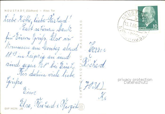 72136474 alte Postkarte Neustadt Harz Altes Tor postalisch gelaufen Erhaltung siehe scans KatCode: 11110016062036