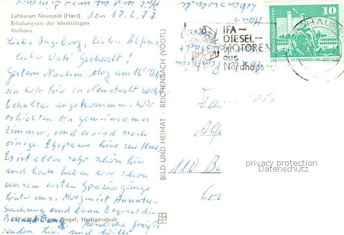 73723017 alte Postkarte Neustadt Harz Erholungsort der Werktaetigen Kurhaus postalisch gelaufen Erhaltung siehe scans [WerneD78] KatCode: 11110016062036