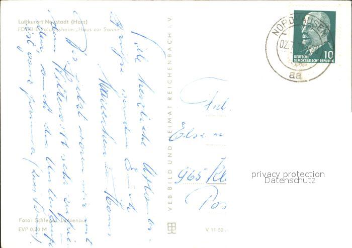 72073605 alte Postkarte Neustadt Harz FDGB Erholungsheim Haus zur Sonne postalisch gelaufen Erhaltung siehe scans KatCode: 11110016062036