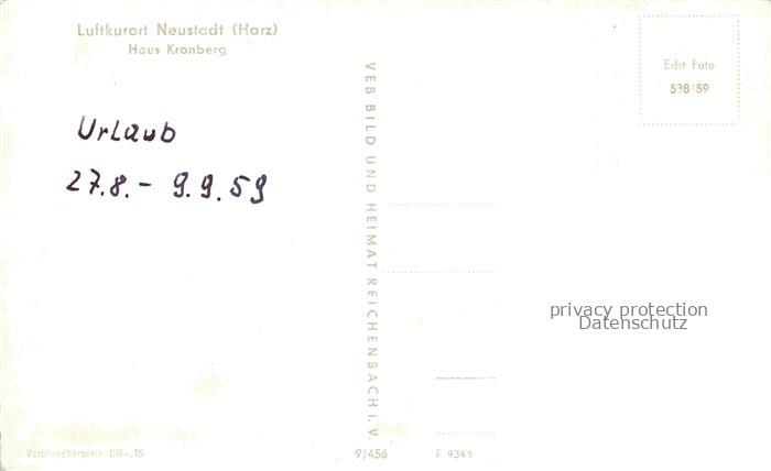 74023175 Neustadt Harz Haus Kronberg postalisch nicht gelaufen Erhaltung siehe scans [WerneD78] KatCode: 11110016062036