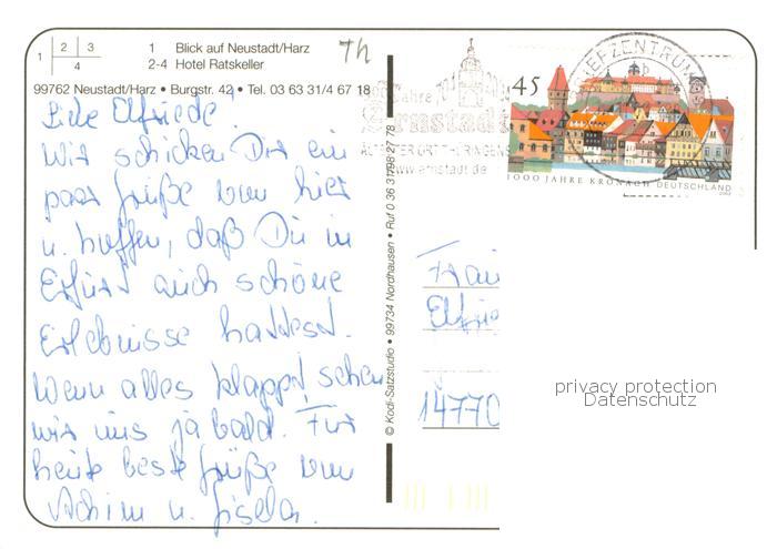 73758542 alte Postkarte Neustadt Harz Hotel Ratskeller Zimmer Gaststube Panorama postalisch gelaufen Erhaltung siehe scans [FriedD77] KatCode: 11110016062036