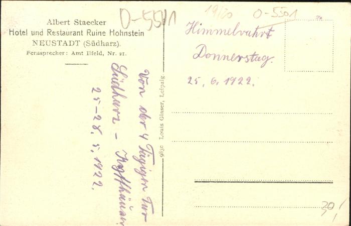 41428270 Neustadt Harz Hotel Restaurant Ruine Hohnstein Albert Staecker KatCode 11110016062036