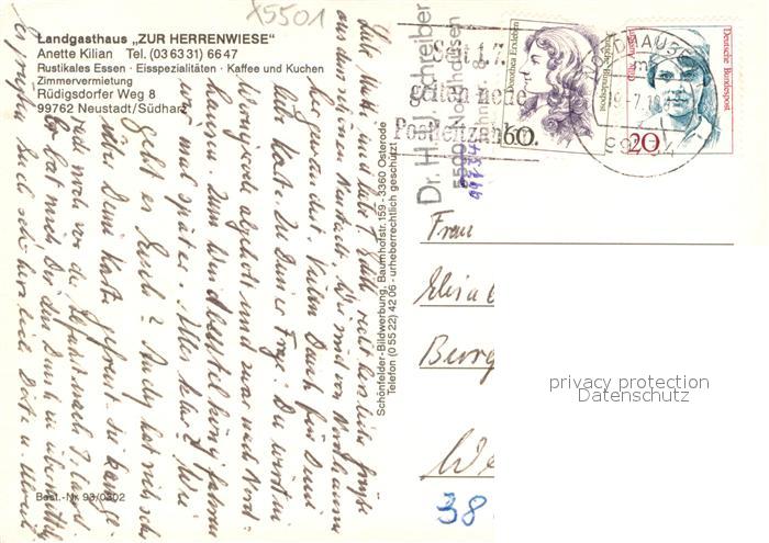 73653412 alte Postkarte Neustadt Harz Landgasthaus Zur Herrenwiese Gastraeume Terrasse Panorama postalisch gelaufen Erhaltung siehe scans [WerneD78] KatCode: 11110016062036