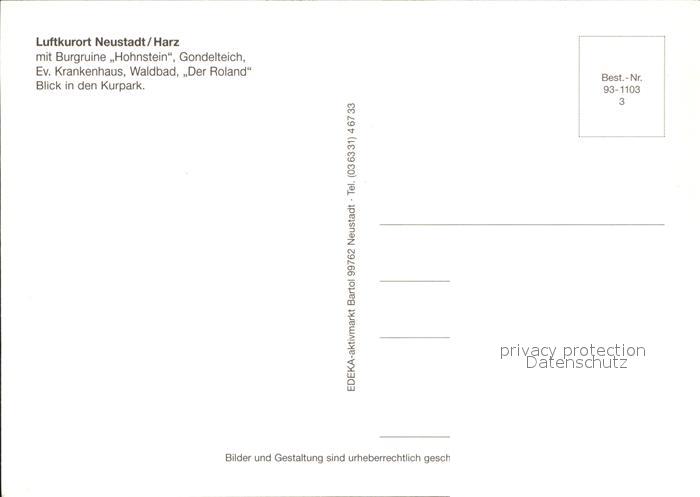 72580660 Neustadt Harz Luftaufnahme Burgruine Hohnstein Gondelteich Krankenhaus Waldbad Roland Kurpark postalisch nicht gelaufen Erhaltung siehe scans [KathaD79] KatCode: 11110016062036