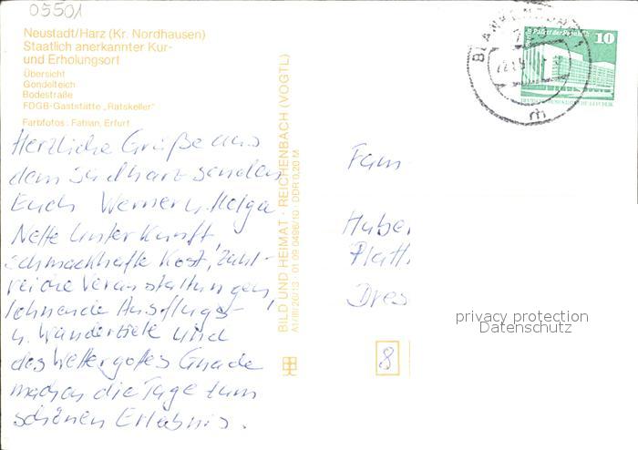 72375106 alte Postkarte Neustadt Harz Panorama Gondelteich Bodestr FDGB Gaststaette Ratskeller postalisch gelaufen Erhaltung siehe scans KatCode: 11110016062036