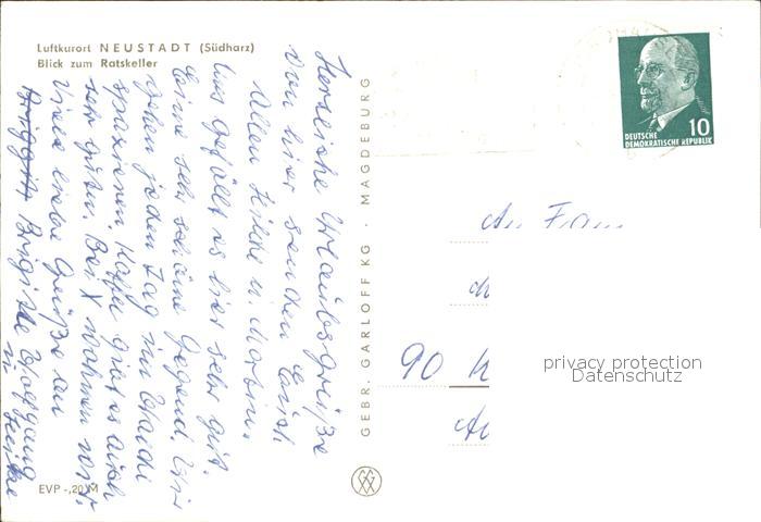 72053360 alte Postkarte Neustadt Harz Ratskeller Kirche postalisch gelaufen KatCode: 11110016062036