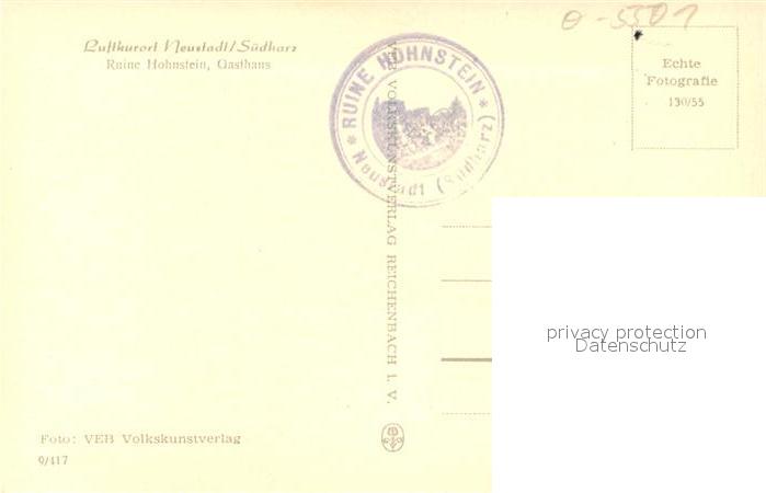 43345397 Neustadt Harz Ruine Hohnstein Gasthaus postalisch nicht gelaufen Erhaltung siehe scans [WerneD78] KatCode: 11110016062036