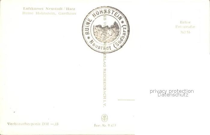 72253359 Neustadt Harz Ruine Hohnstein Gasthaus postalisch nicht gelaufen Erhaltung siehe scans KatCode: 11110016062036