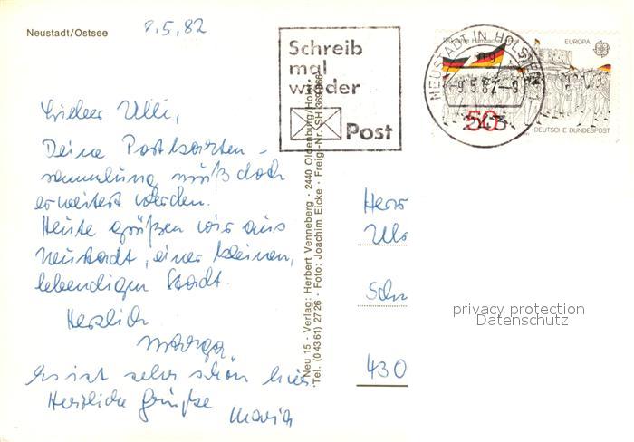 73320995 alte Postkarte Neustadt Holstein Fliegeraufnahme postalisch gelaufen Erhaltung siehe scans [WerneD78] KatCode: 11110001055032