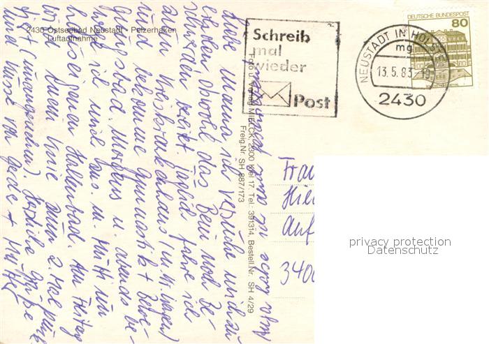 73745728 alte Postkarte Neustadt Holstein Fliegeraufnahme Panorama postalisch gelaufen Erhaltung siehe scans [LiesaD40] KatCode: 11110001055032
