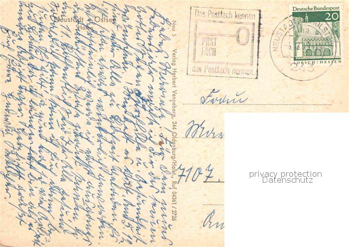 72687389 alte Postkarte Neustadt Holstein Hafen Motorboot Segelboot postalisch gelaufen Erhaltung siehe scans [FriedD77] KatCode: 11110001055032
