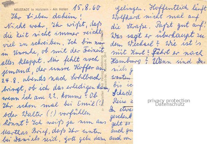 Neustadt Holstein Ostsee Schleswig-Holstein Partie am Hafen postalisch nicht gelaufen Erhaltung siehe scans [FriedD77] Frie Katcode 11110001055032