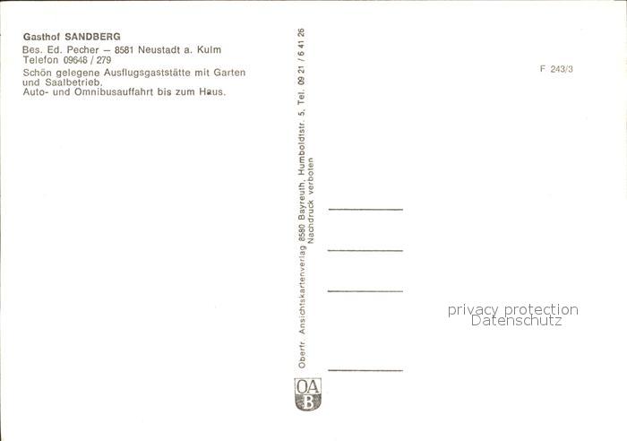 72142927 Neustadt Kulm Gasthaus Sandberg postalisch nicht gelaufen KatCode: 11110009374140