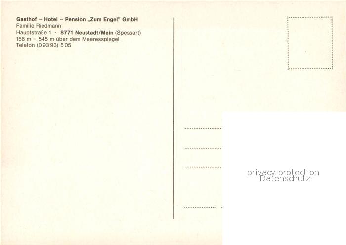 73653020 Neustadt Main Gasthof Hotel Zum Engel postalisch nicht gelaufen Erhaltung siehe scans [WerneD78] KatCode: 11110009677166