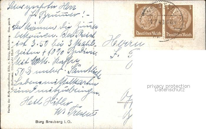 72102206 alte Postkarte Neustadt Odenwald Burg Breuberg postalisch gelaufen Erhaltung siehe scans KatCode: 11110006437004